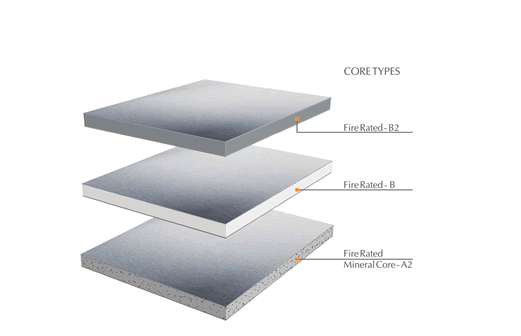 SEVEN BOND is a metal composite panel consisting of two layers of a metallic skin like Aluminum, Stainless Steel, Copper, Zinc, Titanium etc., sandwiching a fire rated core in a continuous co-extrusion process.